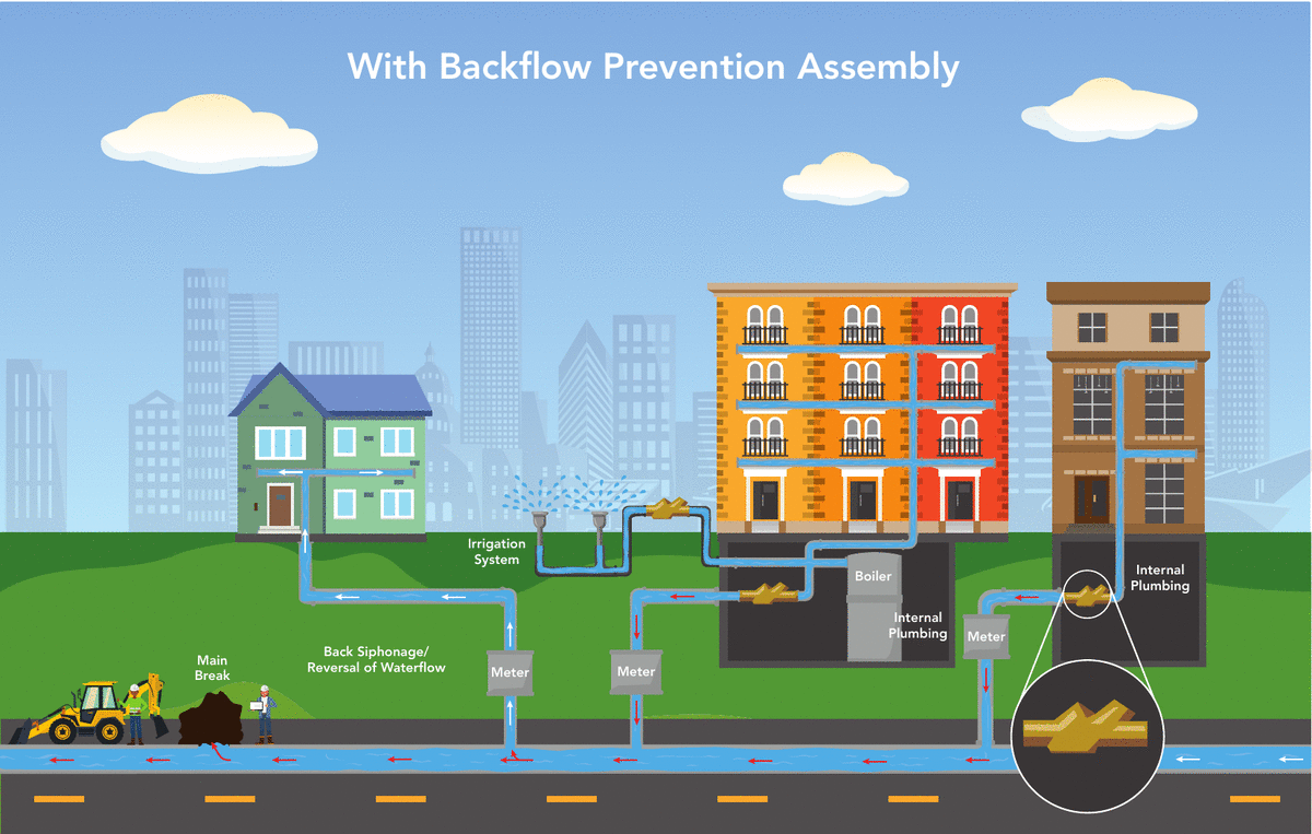 A backflow preventer or backflow device protects the water system from backflow conditions.
